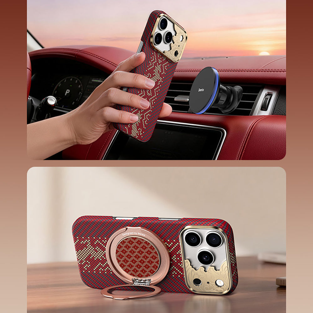 iPhone 17 Pro Max Kılıf M-safe Şarj Özellikli Karbon Fiber Tasarımlı Benks Knight ArmorAir Kevlar Kapak