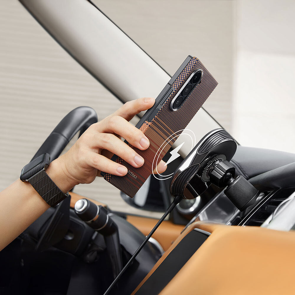 Galaxy Z Fold 6 Kılıf M-safe Şarj Özellikli Aramid Fiber Pitaka Tactile Woven Sunset-Moonrise Serisi Sunset Kapak
