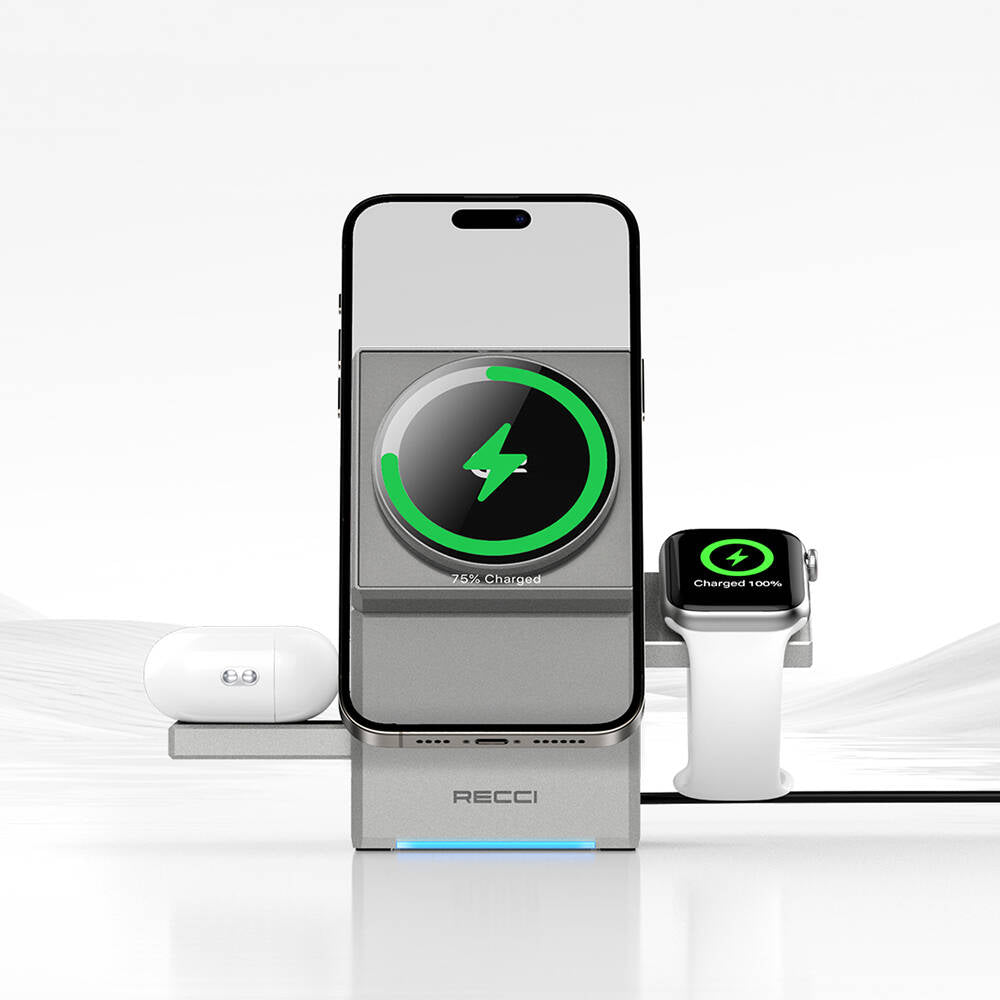 Recci RCW-47 Geometry Serisi Rubik Küp Ambiyans Işıklı Telefon, Akıllı Saat ve Kulaklık için 15W 3in1 Kablosuz Şarj Standı ile kablosuz şarj deneyiminizi yeni bir boyuta taşıyın. Bu yenilikçi cihaz, üç farklı cihazınızı aynı anda kablosuz olarak şarj etme yeteneğine sahiptir. İster telefonunuzu, ister akıllı saatinizi, ister kulaklığınızı şarj edin, RCW-47'nin sunduğu hızlı ve verimli şarj özelliği ile her zaman güvende olun. Qi2 sertifikalı şarj standı, 15W manyetik şarj desteği sunarak cihazlarınızın her zaman tam performansla çalışmasını sağlar. Ayrıca, güçlü manyetik alanı sayesinde telefonunuz güvenli bir şekilde yerinde durur ve şarj sürecinde kesinti yaşanmaz.